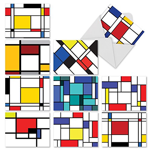 The modern art lover will appreciate sending -- or receiving -- a note written on these Mondrian-influenced All-Occasion Note Cards. Use them to invite friends to view your gallery of new vacation photos or just to say hello or thank you. These notecards look great framed, too! Try framing them individually, or grouping several in a collage frame, to create visually appealing wall decor.