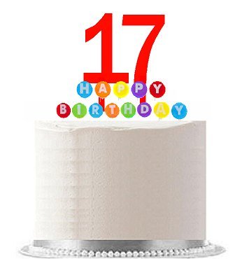 Item#017WCD - Happy 17th Birthday Party Red Cake Topper & Rainbow Candle Stand Elegant Cake Decoration Topper Kit