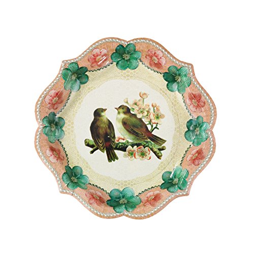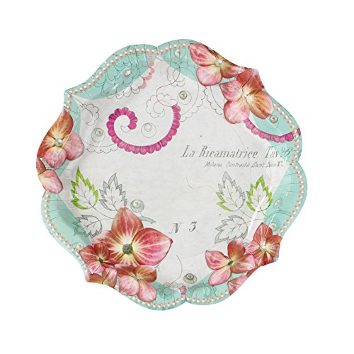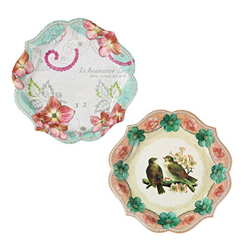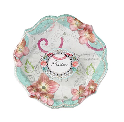 Talking Tables Pastries & Pearls Vintage Style Paper Plates, 12 count, for a Tea Party or Birthday, Multicolor