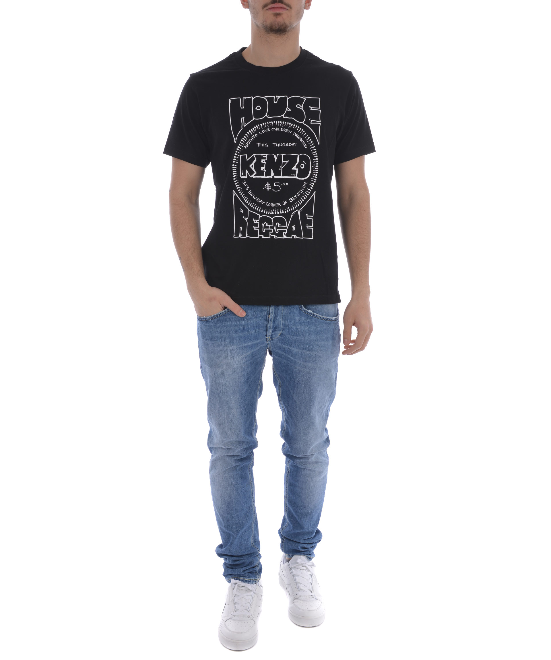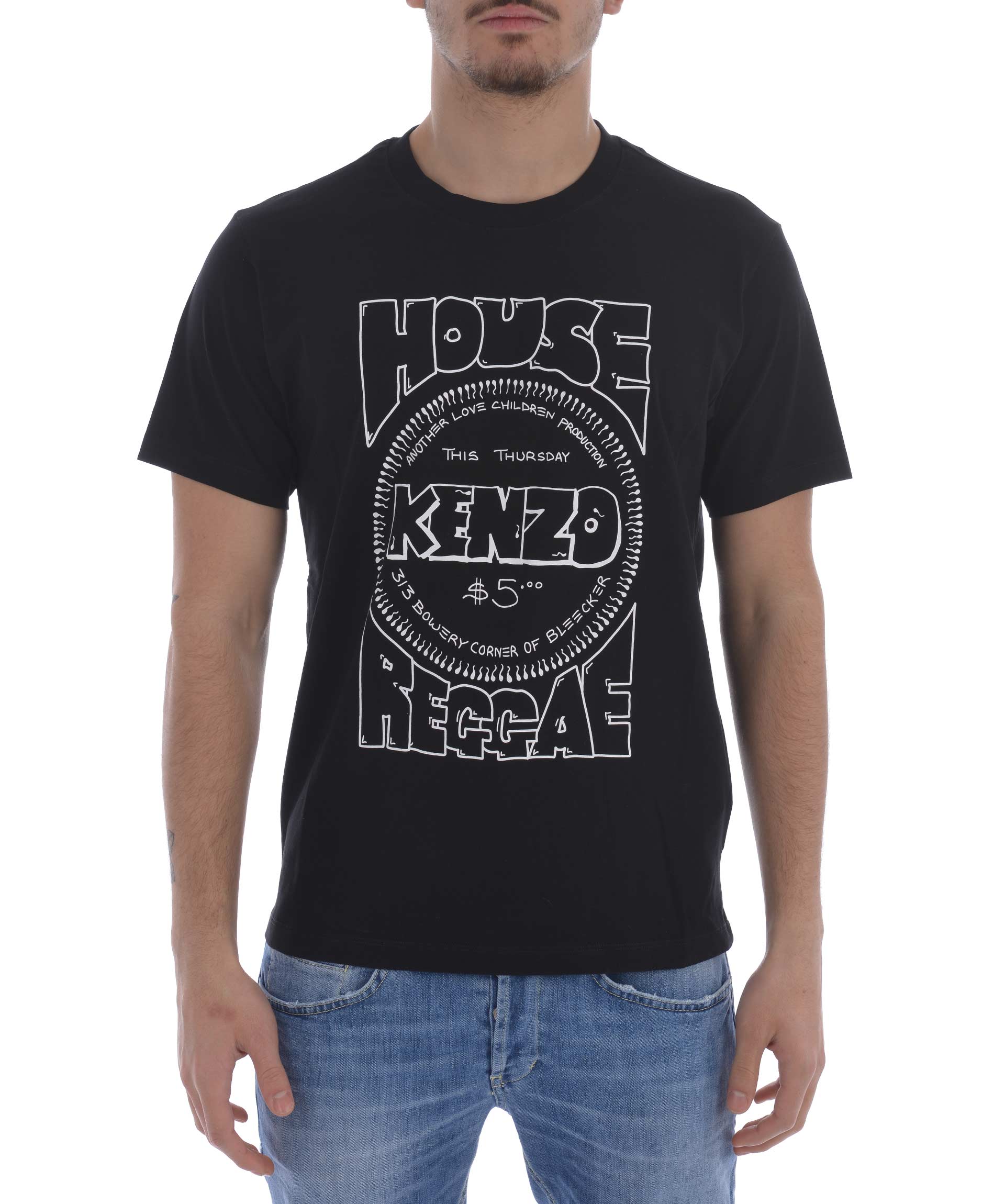 House Of Reggae T-Shirt from Kenzo: Black House Of Reggae T-Shirt with round neck, print on front, short sleeves and a straight hem.