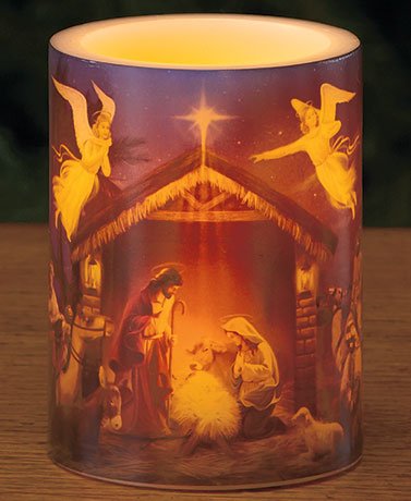 Flameless and Affordable Holiday LED Candle Made From Real Wax - Blessed Nativity