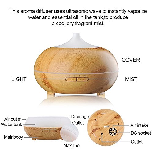 Unique and Compact Design. This aroma diffuser with wood grain looks very natural and primitive. The cap is easy to take off, need't unscrew the cap with great force