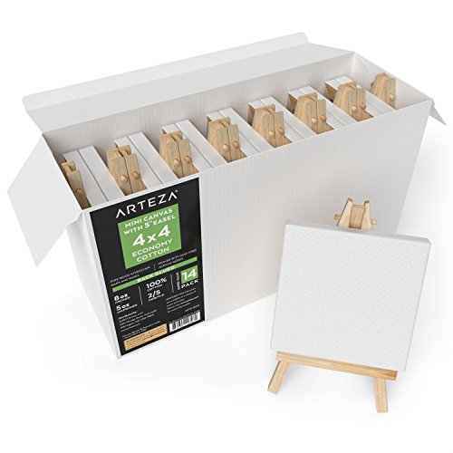 Arteza 4"x4" Mini Canvas & Easel (Set of 14)