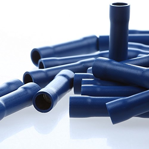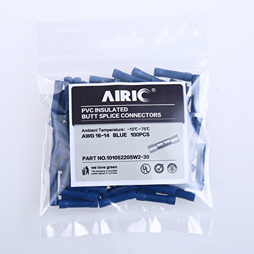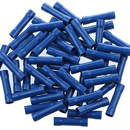 AIRIC 100pcs Blue 16-14 Gauge Vinyl Insulated PVC Butt Splice Wire Crimp Connectors