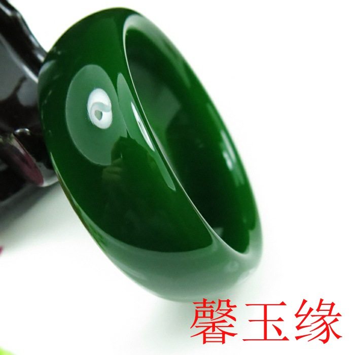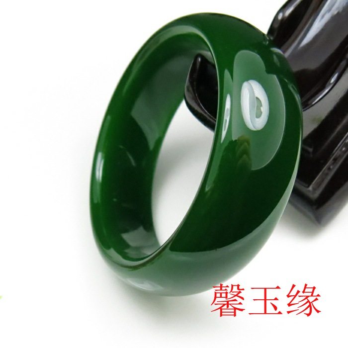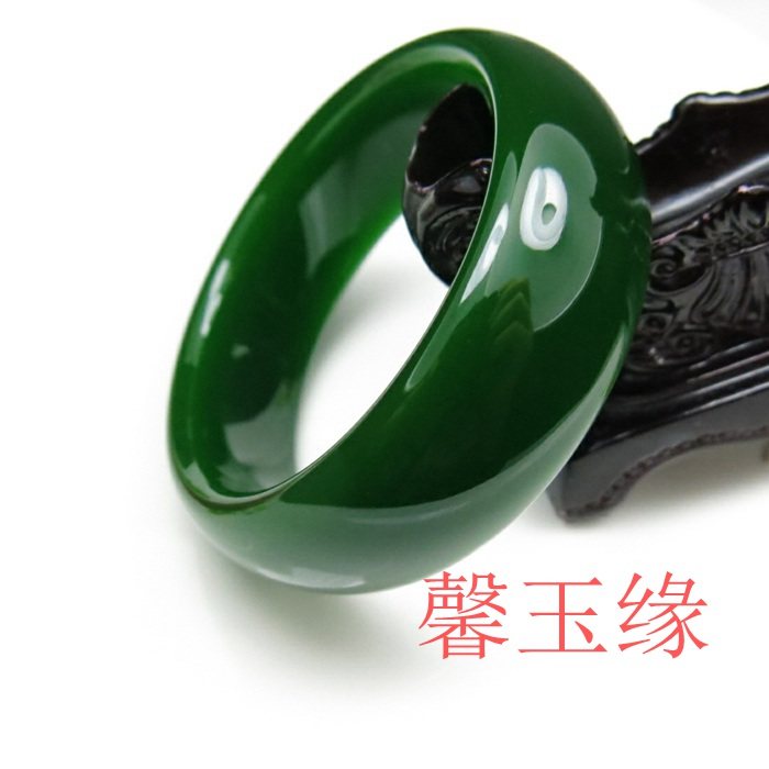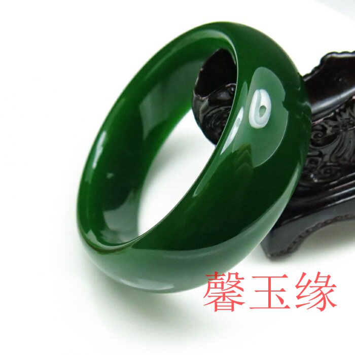和田玉碧玉手镯扁圆形菠菜绿碧玉玉镯子加宽版质