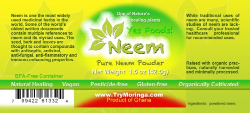 Studio : Yes Moringa Farms Publisher : Yes Moringa Farms Binding : Health and Beauty Product Description Neem is one of the most widely used medicinal herbs in the world. Some of the world's oldest written documents contain multiple references to neem and its myriad uses. The seed, bark and leaves contain compounds with proven antiseptic, antiviral, anti-flammatory, anti-fungal and immuno-enhancing properties. 0