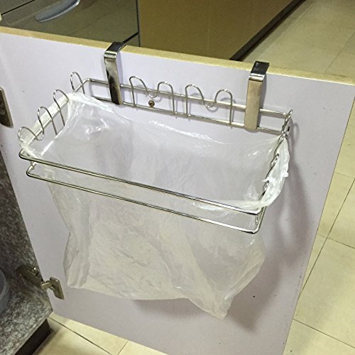 - Design:Over cabinet door track bag rack, no screw, no tools, easy to hang and not occupy the space,it help to clean your kitchen,not allow you in a mess