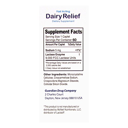 Guardian Dairy Relief Fast Acting Caplets, Lactase Enzyme, 60 CT