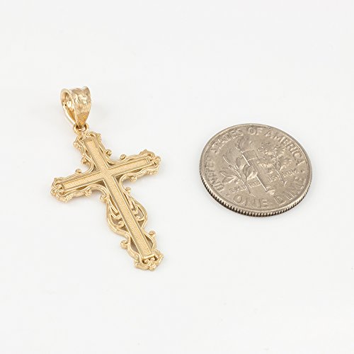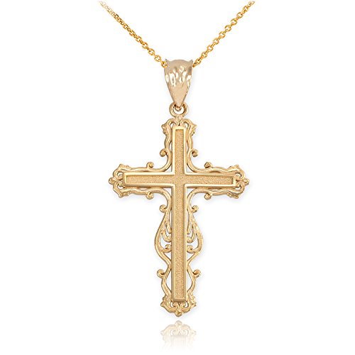 -. Binding : Jewelry -. Brand : Religious Jewelry by FDJ -. Department : womens -. Feature : handmade religious latin cross pendant dangling from its dainty yet durable solid 10k yellow gold chain necklace / faithfully handcrafted with authentic 10 karat yellow gold in perfect polished finish / comes with free special gift packaging / made in the USA yet offered at factory direct jewelry P.R.Ice / ships from the manufacturer directly to the customers -. Label : Claddagh Gold -. Manufacturer : Claddagh Gold -. Model : CM1480 -. MPN : CM1480 -. PartNumber : CM1480 -. ProductGroup : Jewelry -. ProductTypeName : FASHIONNECKLACEBRACELETANKLET -. Publisher : Claddagh Gold -. Studio : Claddagh Gold -. Title : 10k Yellow Gold Latin Fancy Cross Pendant Necklace