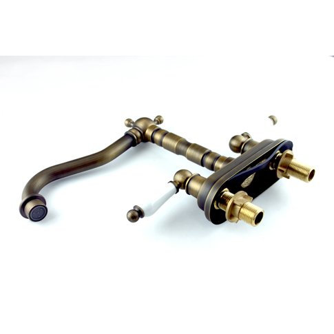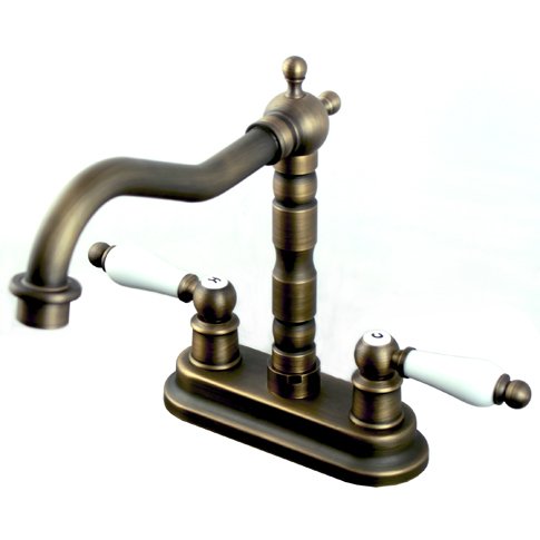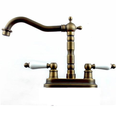 -. Title : Vintage Centerset Antique Brass Finish 4-inch Widespread Bathroom Sink Faucet Dual Ceramic Handles Mixer Tap Lavatory Basin Faucet