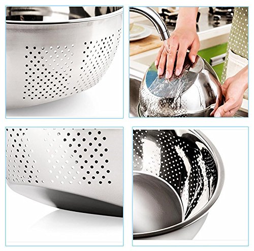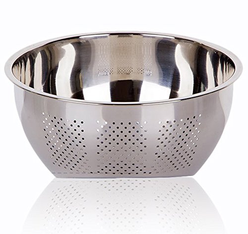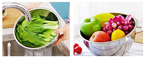- FOOD GRADE & HEAVY DUTY STAINLESS STEEL: in order to offer solid construction and high quality kitchen colander, it’s constructed of thickened food grade stainless steel with a mirror-polished surface, harmless to food, corrosion resistant and durable, has longer service life.