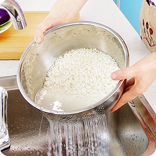 - EASY AND SAFE TO USE: comes with evenly fine drainage holes at the side of colander, it offers fast draining and keeps rice, vegetables and fruits in the colander at the same time.