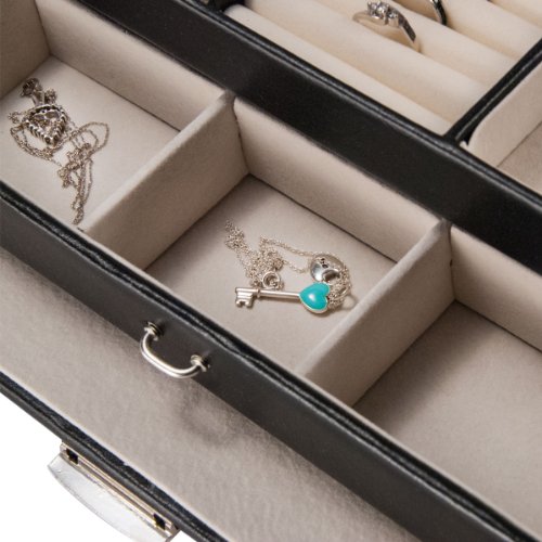 -. Binding : Sports -. Brand : BARSKA -. Color : Black -. Department : unisex-adult -. EAN : 0790272984336 -. Feature : The bottom drawer features dividers for customization / The compact size, key lock and carrying handle make this jewelry case ideal for travel / Includes a mirror, ring roll and 2 earring holders which can hold up to 16 earrings / Multiple drawers with adjustable dividers and 8 storage compartments / Dimensions: 9.5 Inches x 5.5 Inches x 4.25 Inches -. Label : Barska -. Manufacturer : Barska -. Model : BF11974 -. MPN : BF11974 -. NumberOfItems : 1 -. PackageQuantity : 1 -. PartNumber : BF11974 -. ProductGroup : Sports -. ProductTypeName : SPORTING_GOODS -. Publisher : Barska -. Size : 9.5 x 5.5 x 4.25-Inch -. Studio : Barska -. Title : Cheri Bliss Jewelry Case, 9.5 x 5.5 x 4.25-Inch -. UPC : 885242410387