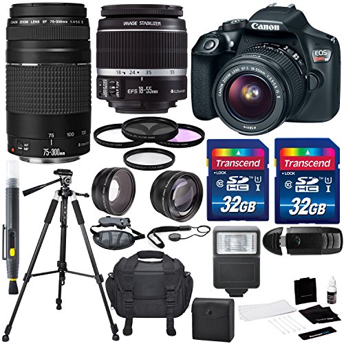 Includes Canon EF-S 18-55mm f/3.5-5.6 IS II Lens and EF 75-300mm f/4-5.6 III Lens together with a variety of filters for optimal shooting in every situation