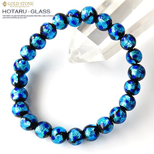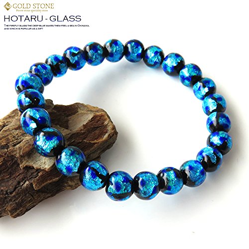 GOLD STONE 야광 타입 (호타루)반디 유리 팔찌8mm 스카이 블루 잠자리석 오키나와에서 대인기의 선물 아이템