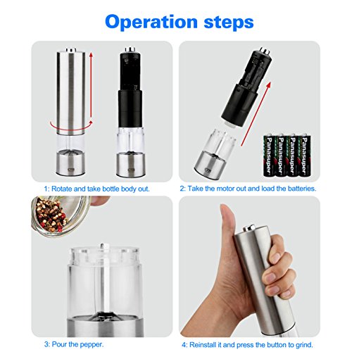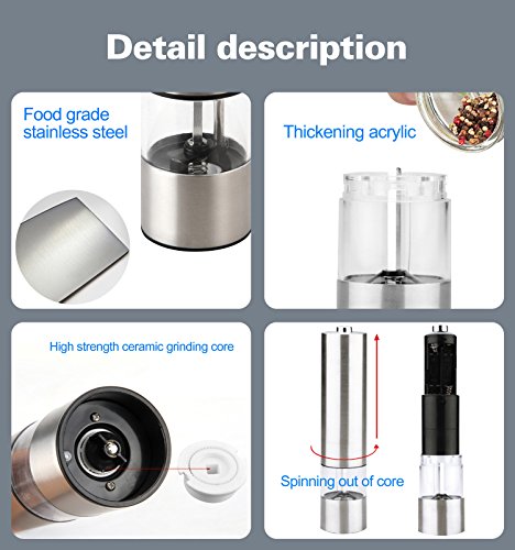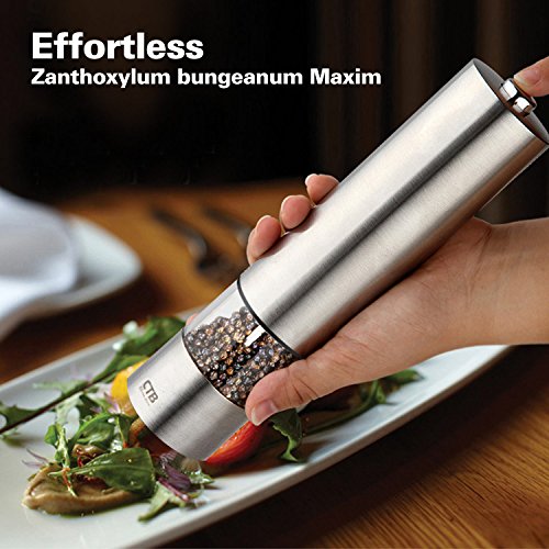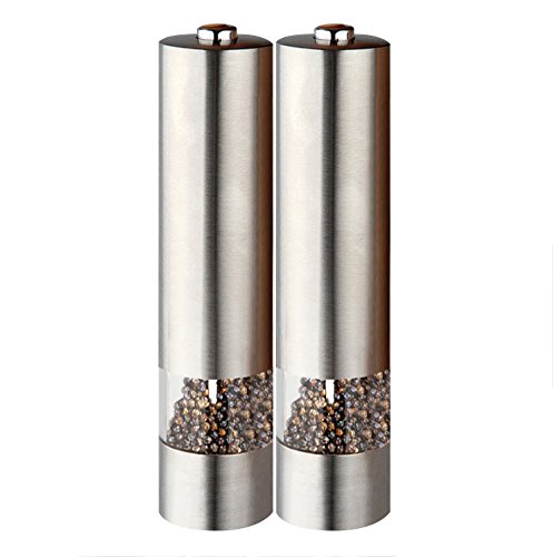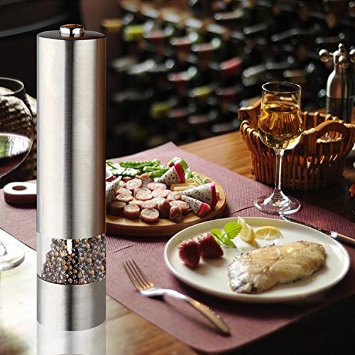 - A BUILT-IN LED LIGHT AND WINDOW DESIGN : High-quality, durable stainless steel with window ; electronically operated salt grinder to illuminate as it grinds.