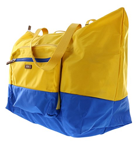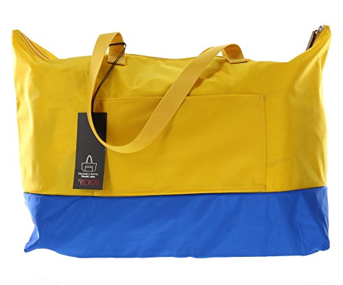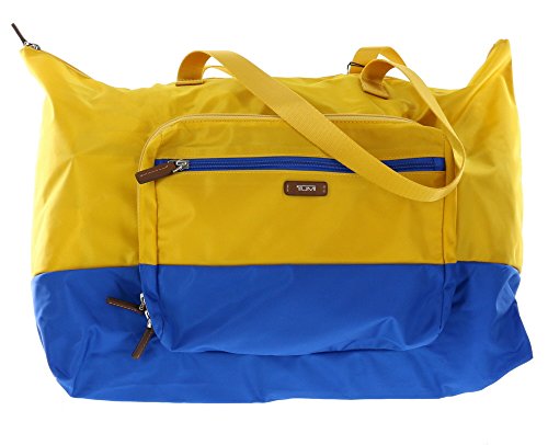 -. Brand : Tumi -. Color : Yellow and Blue -. Department : womens -. EAN : 0742315267111 -. Feature : Tumi Packable Nylon Duffel Bag with wrap-around zipper and front zip pocket / Expands to duffel bag with an outer slip pocket and 1 zip pocket / Dual nylon handles and spacious interior compartment with a zip top closure / Approx. dimensions: 13in x 21.5in x 10in (33cm x 54.5cm x 25.5cm) / Collapses to 10in L x 8in H x 1.5in W -. ProductGroup : Apparel -. ProductTypeName : LUGGAGE -. Title : Tumi Denton Packable Duffel Bag Collapsible Convertible Travel Bag in Yellow and Blue -. UPC : 742315267111