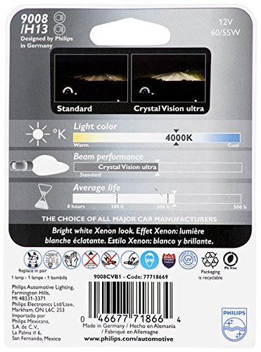 Philips 9008 / H13 CrystalVision Ultra Upgrade Headlight Bulb, 1 Pack