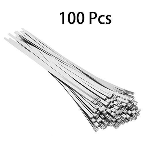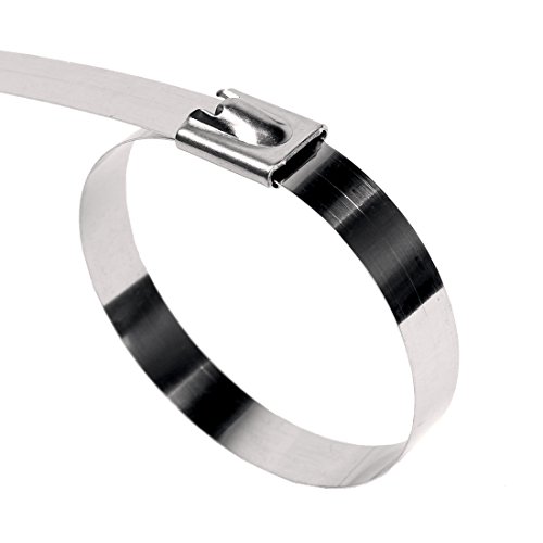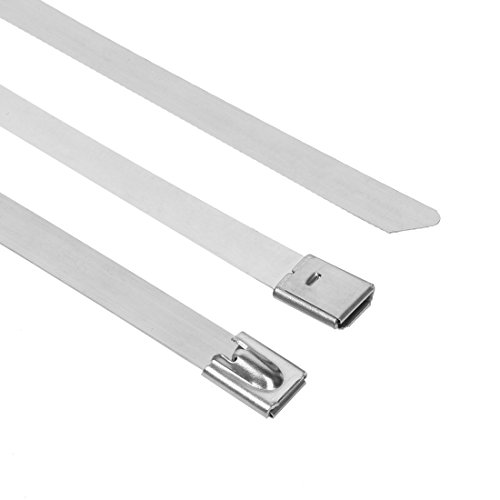 uxcell 100pcs 15.7Inches Stainless Steel Exhaust Wrap Coated Locking Cable Zip Ties sliver