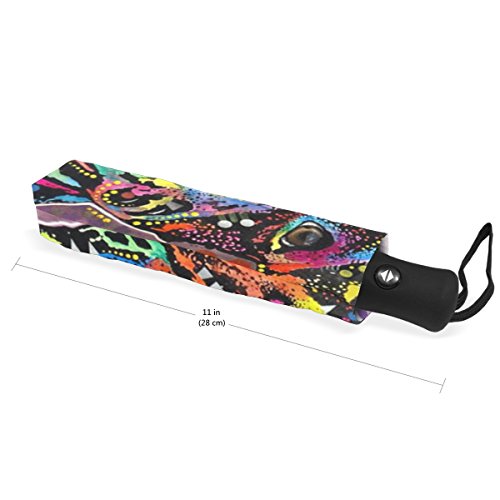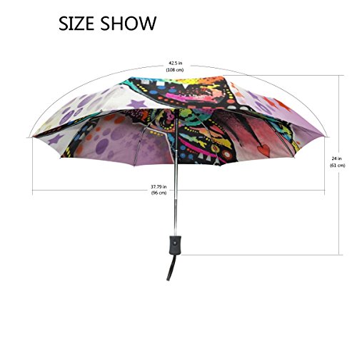 materials: made of 100% polyester pongee waterproof fabric. Weight: it is lightweight, 393g. Single-sided printing. Style: automatic open and close umbrella; foldable mini travel umbrella. Can be used on rainy and snowy day. Suitable for boys, girls, women and man. Feature: Light weight, small, portable. This Dean Pitbull Colorful Pug Dog Polka Dot Star folding umbrella is also a perfect Christmas gift, new year gift, and back to school gift. 0