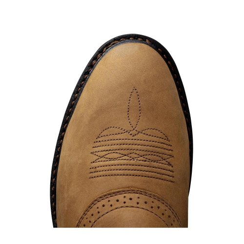 -. Feature : Premium full grain leather foot and six-row stitch pattern upper / ATS® Advanced Torque Stability technology with composite forked shank / Roper Toe Profile / Moisture-Wicking Lining / Safety toe is ASTM F2413-11 M/I/75 C/75 EH rated