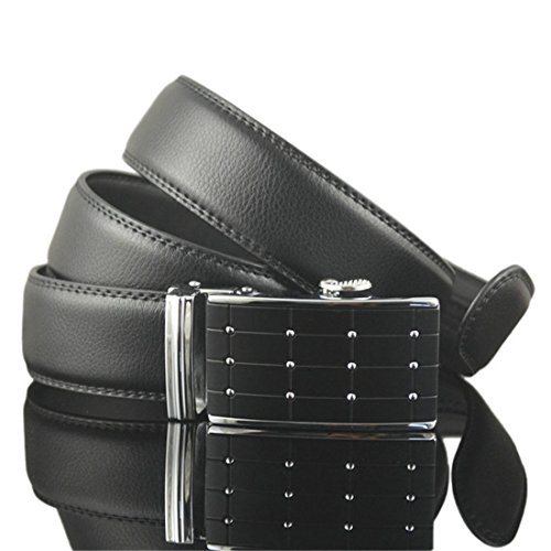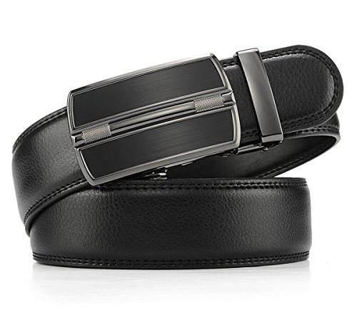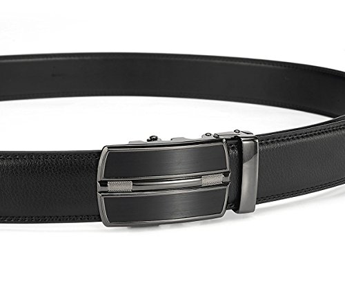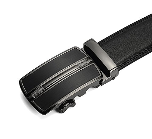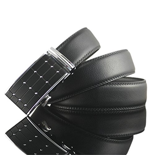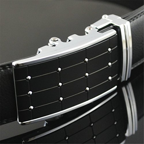Belt Features: (a)The belt is sleek and clean, and provides a perfect fit for everyone. (b)plz buy one size larger than your waist,oversize for special demand (c)The tip of the belt inserts into the ratchet belt buckle, where a locking mechanism holds the belt in place from the back. (d)To remove the belt, just press the small metal lever on the bottom of the buckle, and the belt slides out of the buckle.