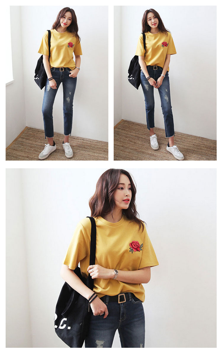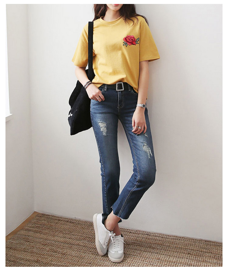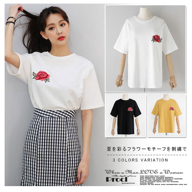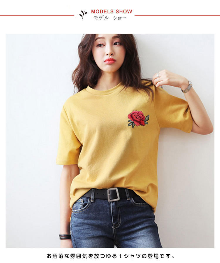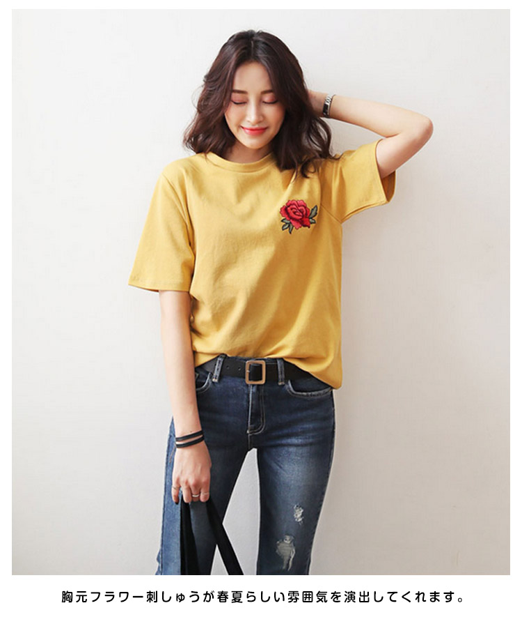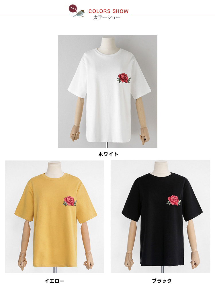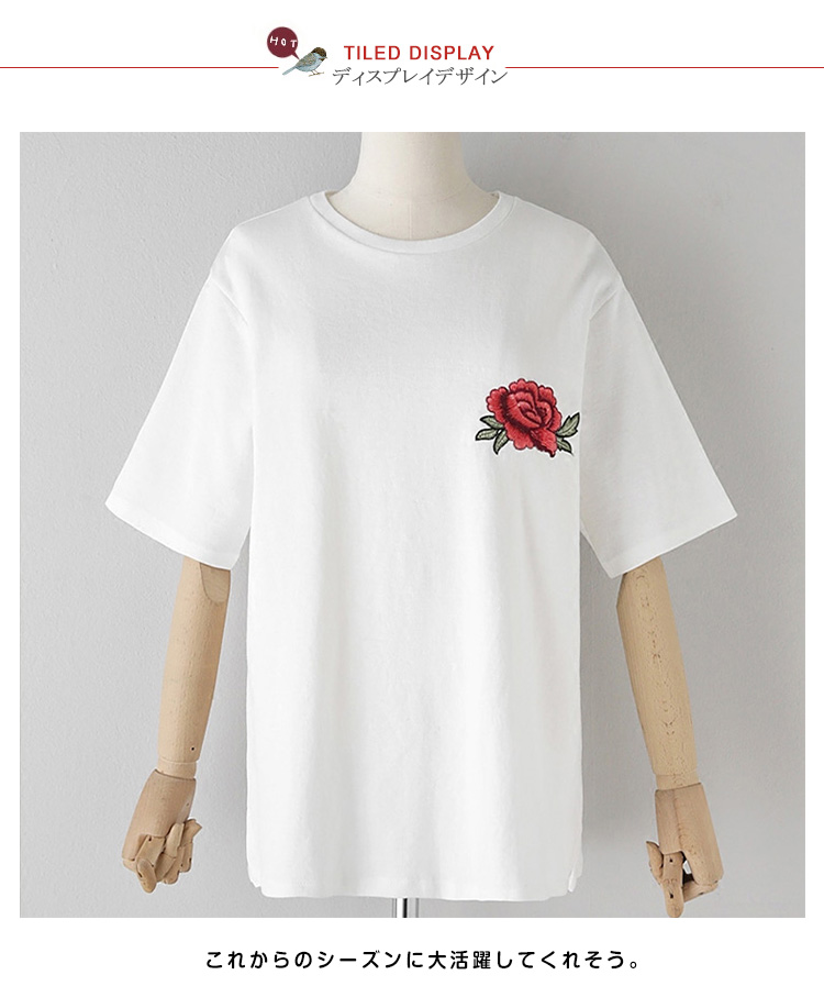 | 夏を彩るフラワーモチーフを刺繍で。お洒落な雰囲気を放つゆるtシャツの登場です。胸元フラワー刺しゅうが春夏らしい雰囲気を演出してくれます。サラッと1枚で着用できるので嬉しい。肌ざわりの優しいコットン素材が気持ちよく◎これからのシーズンに大活躍してくれそう。 | |