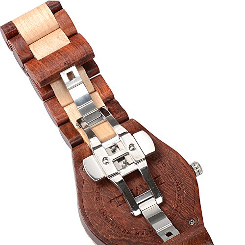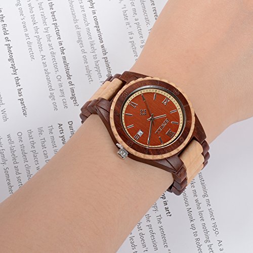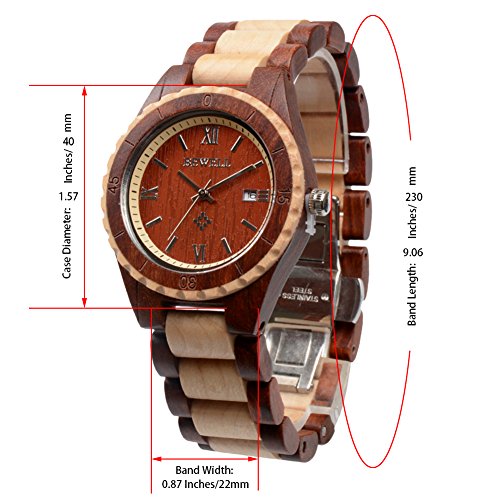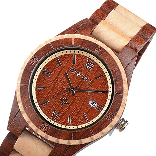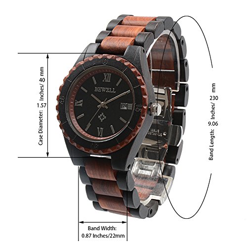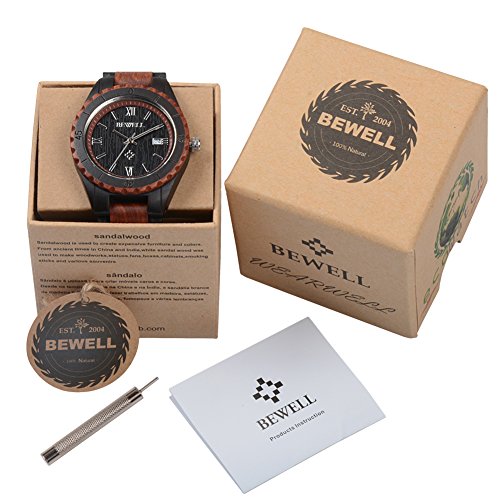 -. Binding : Watch -. Brand : Bewell -. Department : Mens -. Feature : Handmade Watch -- Made of 100% natural wood from Africa and North America and is hand-crafted and polished well. / Unique Style -- Every Bewell watch has distinctive wood grain and a slight sandalwood smell. Light weight makes it so nice to wear. / Analog Display -- Quartz movement; Date display at 3 o'olock; 36 months battery life; Luminous hands make it easier to read the time in the dark. / Adjustable Band -- 1:Adjust needle aim at the side hole 2:Stand the watch 3:use a little hammer to knock the needle 4:Take off the watch link needle and links 5:Brought the band back and press out. / Perfect Gift -- Good choice for a stocking stuffer as Christmas, birthday gift, even a great conversation starter compared with common steel watch. -. Label : ZS -. Manufacturer : ZS -. MPN : W128AG -. PackageQuantity : 1 -. PartNumber : W128AG -. ProductGroup : Watch -. ProductTypeName : WATCH -. Publisher : ZS -. Studio : ZS -. Title : Bewell Wooden Watch for Men Contrasting Color Band Round Face Quartz Movement Wristwatch