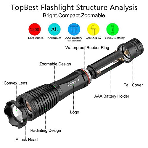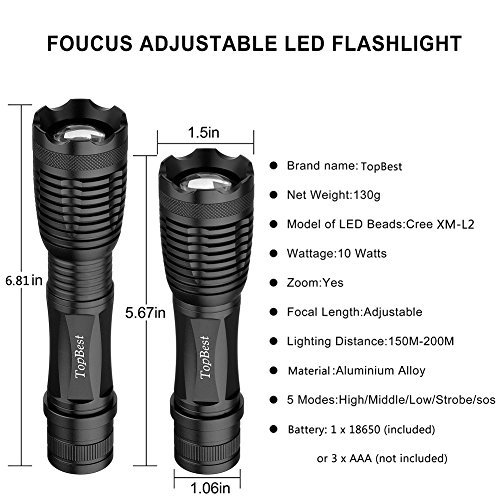 (TopBest)/Medical Supplies Equipment/Mobility Daily Living Aids/DIRECT FROM USA/TopBest Portable Ultra Bright Handheld LED Flashlight, Outdoor XM-L2 LED Torch with Adjustable ...