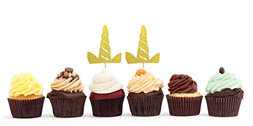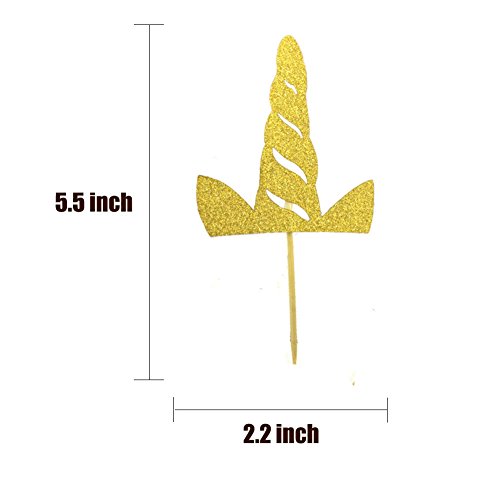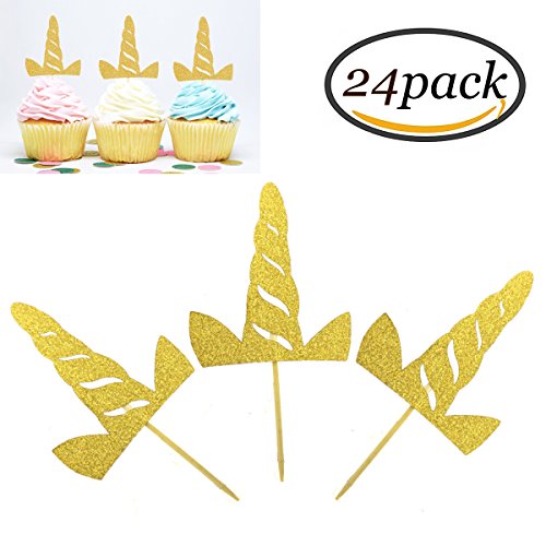 24 Pack Unicorn Party Cupcake Toppers Gold Unicorn Horn Shape Cake Decorations for Baby Shower Birthday Party Favors
