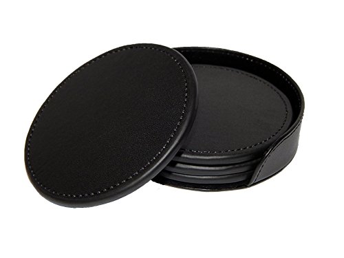 -. Feature : ☕️ You will love our simple black Leather Coasters. These will look beautiful in any room of your home, but most importantly they WILL protect your furniture. The perfect set of coasters for drinks. / ☕️ Each set of coasters come with its' very own Coaster Holder for easy storage and tracking so you never lose your set! / ☕️ Each order comes with a Set of 4. Perfect for any holiday and family gathering. / ☕️ The black leather coaster design is so perfect that it will go beautifully in any room. They are SUPER simple, so it will match all sorts of furniture. / ☕️ They are PU Vegan Leather so no animals were harmed in the making of these beautiful Black Coasters. ❤❤❤