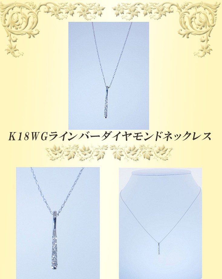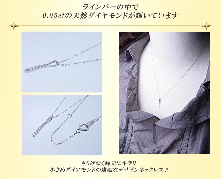 商品説明 ホワイトーゴールドのラインの中で0.05ct天然ダイヤモンドが輝くシンプルなネックレスです。