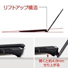快適な操作感 液晶パネルを開くと本体後部が約4.8mmせり上がり、キーボード部分に自然な傾斜が生まれる。このリフトアップ構造を採用する事でキーボードでのタイピングがより快適になり心地良い打鍵感を体感できる。 |