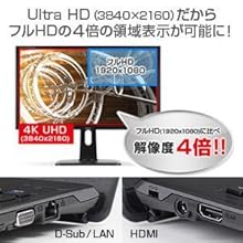 高解像度4Kディスプレイ出力も可能/IEEE802.11ac準拠した無線LANも内蔵 薄さ約22.8mmのスリムなボディにプロジェクターなどのアナログ入力形式の映像機器が接続できるD-Sub出力端子を装備。さらに1000Base-T対応のLAN端子や、4K出力可能なHDMI端子を搭載、IEEE802.11ac規格に準拠した無線LANも内蔵し、高速なネットワーク環境を実現、パーソナルシーン、ビジネスシーンどちらにもスマートに持ち歩きが可能。 ※4K対応ディスプレイに市販のハイスピードHDMIケーブルで接続します。最大3,840x2,160/30Hz表示に対応します。 |