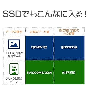 しかし、表のとおり一般的な使用では240GBでも十分なデータ保存量がある。