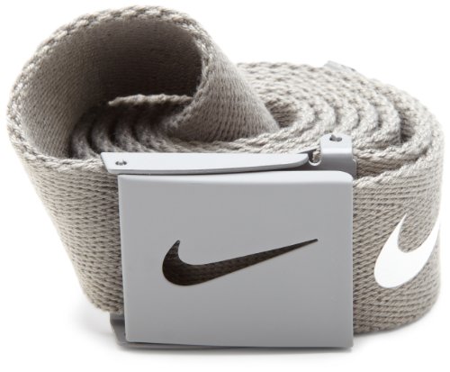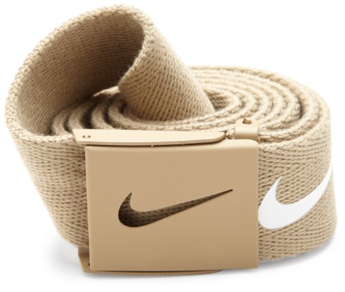 Product Description Nike reversible cotton web belt. Adjustable sizing. One size fits most up to size 42. Rubber coated military buckle with bottle opener.