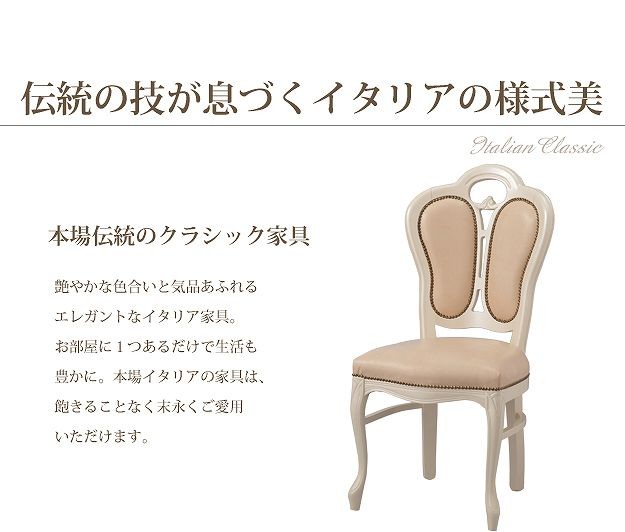 芸術作品ともいえるイタリア直輸入家具をご自宅に☆ヴェローナエレガントダイニングチェア(合皮)。艶やかな色合いが気品あふれるエレガントな本場伝統のクラシック家具です。美しい猫脚と滑らかな曲線を描くフォルムがお部屋をエレガントに演出します。