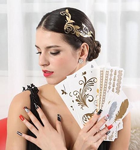 Hair Tattoos are finally here and they're actually very pretty. The newest Hottest craze, hair tattoos have finally arrived! Worn by celebrities on the red carpet, these hair tattoos are now available to you. Each set contains 10 Hair Tattoo sheets as shown.Feature
