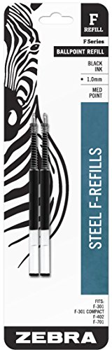 Zebra Pen F-Refill, 1.0mm, Black, 2 Pack (85412)