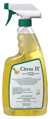 -. Binding : Health and Beauty -. Brand : Citrus II -. Label : Citrus II -. Manufacturer : Citrus II -. ProductGroup : Health and Beauty -. ProductTypeName : HEALTH_PERSONAL_CARE -. Publisher : Citrus II -. Studio : Citrus II -. Title : Citrus II Hospital Germicidal Deodorizing Cleaner with Trigger Spray, 22 Fluid Ounce