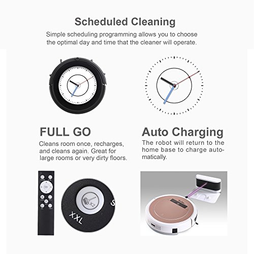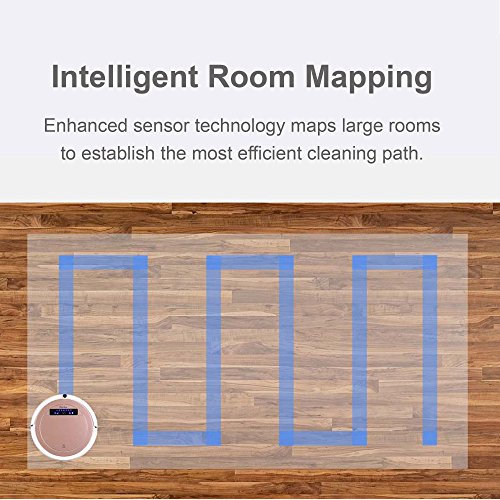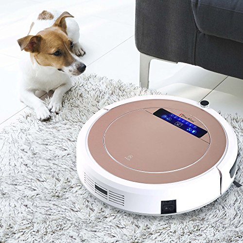This robotic vacuum cleaner has a lot of other premium features, like: stronger 1.2 kPa motor, quieter (<50 dB) operation, automatic return to and charging at charging station when the battery is low, 5 pre-set cleaning modes, anti-fall and anti-collision sensors, an extra-large 900 ml dustbin that requires less frequent emptying, low-profile design (less than 4” height) that allows it to clean under sofas, voice alerts, a remote control that offers one-button control, and an attractive rose gold finish.