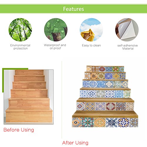 Studio : NewKingStar Publisher : NewKingStar Product Description These unique stair backsplash tile stickers offer many advantages that help you make your home more beautiful. Beautify your doors in a decorative style.