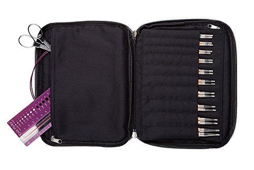 - Two large zippered pouches are perfect for interchangeable cables and small knitting notions, such as steeking scissors, view sizer, stitch markers, row counters, and cable needles