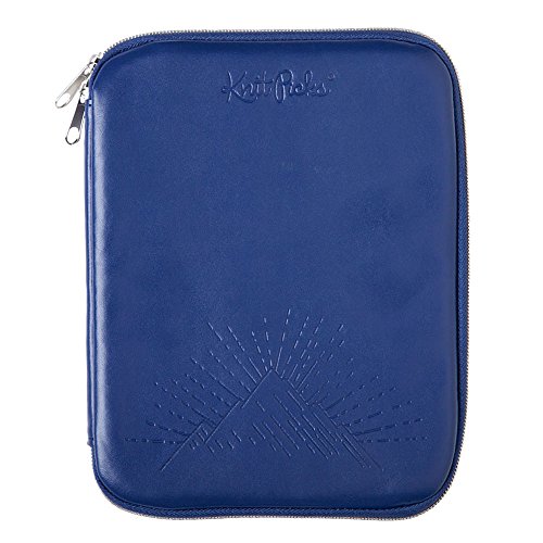 - This stylish and portable knitting needle organizer and carrying case makes toting your knitting supplies a snap, featuring a rich navy blue color and shining mountain embossed design. The pinnacle of craft skill demands the height of quality in tools.