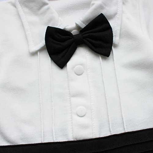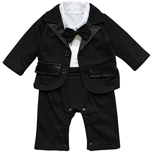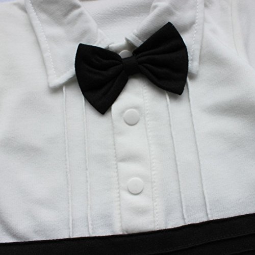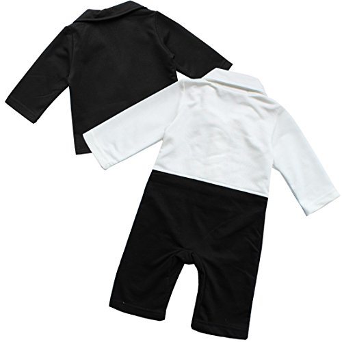 -. Binding : Apparel -. Brand : iiniim -. Color : Black, White -. Department : baby-boys -. Feature : Material: Cotton. / Turndown lapel collar. / Bowtie around the neck, long sleeves. / 2 pocket flaps at the bottom. Press button closures at the front. / Suitable for to wear in sP.R.Ing and autumn for pageant, party, wedding or birthday. -. ProductGroup : Apparel -. ProductTypeName : SHIRT -. Title : iiniim Baby Boy's 2Pcs Gentleman Wedding Formal Tuxedo Suit Romper Outfit