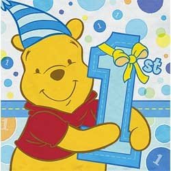 -. Title : Pooh's First Birthday Boy Lunch Napkins, 16ct
