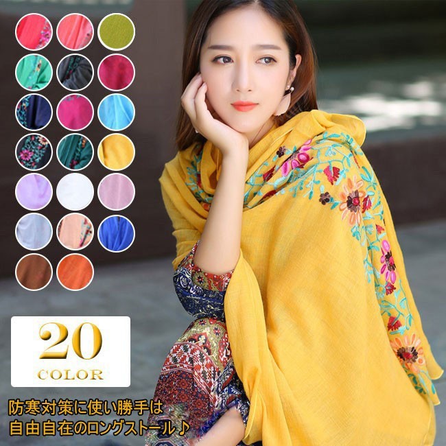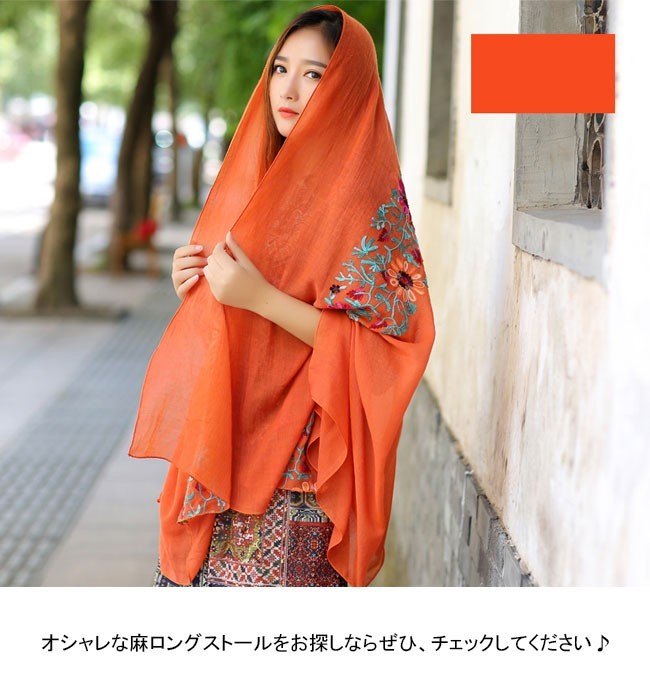 | 商品名 | スカーフ レディース 刺繍スカーフ 民族風 大判サイズ 綿麻スカーフ ストール ショール リネン マフラー お洒落 大人 2018春新作 |