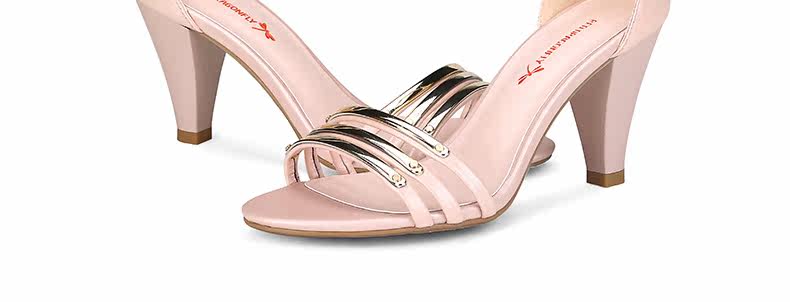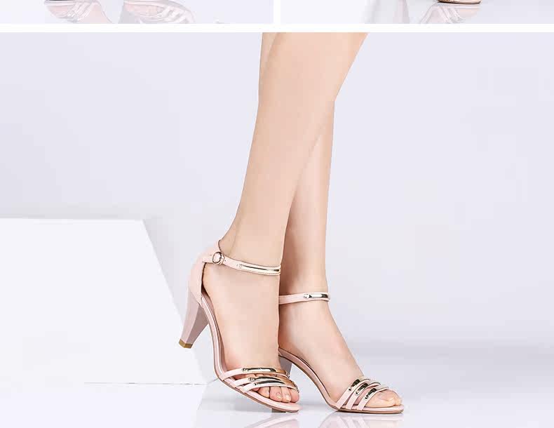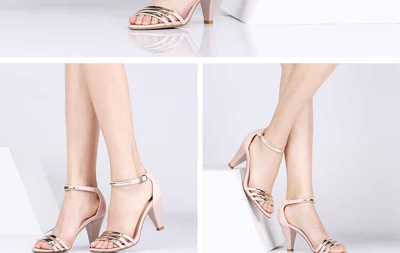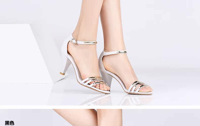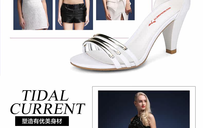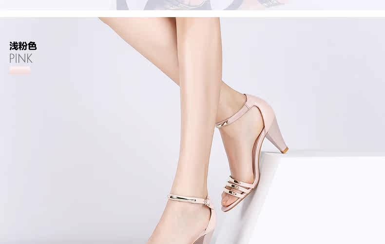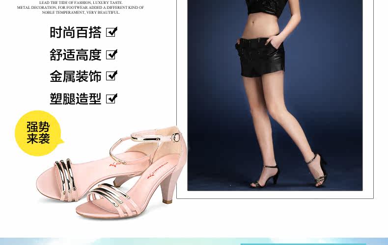 女凉鞋 夏季新款欧美锥形超高粗跟羊皮女凉鞋
