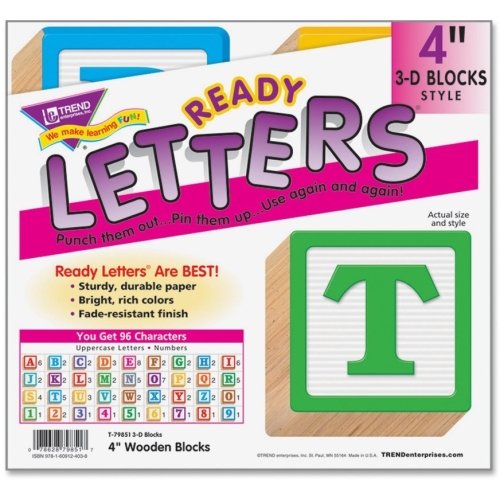 -. Title : Trend 3-D Block Style 4" Ready Letters - 4" - Assorted