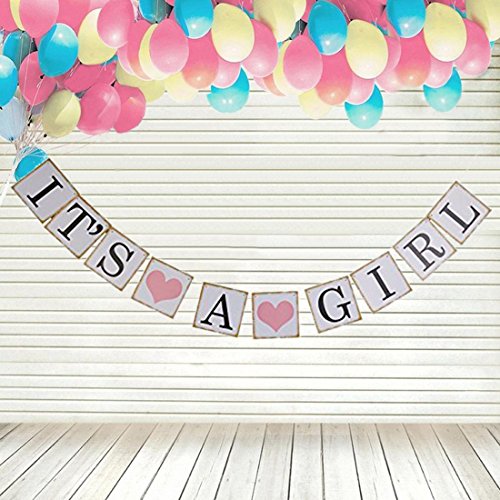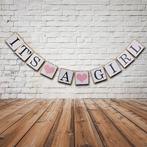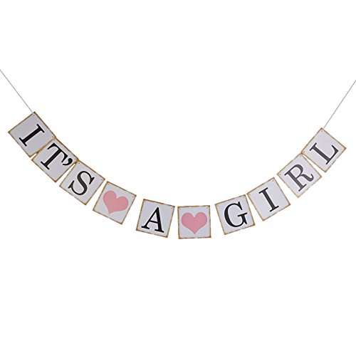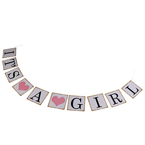 -. Feature : A beautiful handcrafted "IT'S A GIRL " baby PINK heart banner bunting. / perfect for little girl baby shower, 1st birthday party, little girl photo props. / Material: Pearlescent Cardstock with Rustic Gold Edge. / Each Card Measures Approx 12*12cm / 4.7*4.7 inch.Rope length: Approx 2.4m / 2.6 yd / The garland comes pre-folded. You need to string them together with ropes.but it's very easy